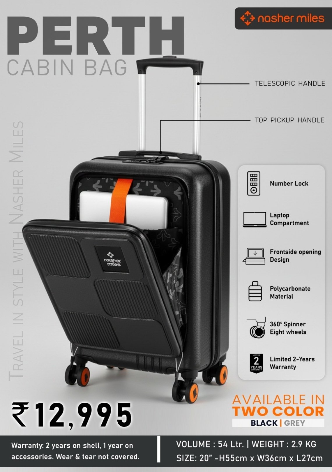 - Two stylish colors: Black & Grey