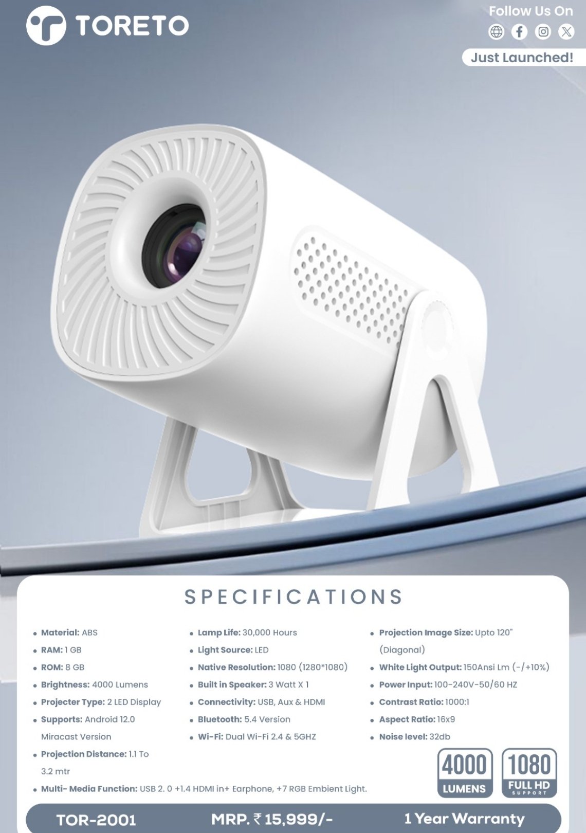TOR-2001 Projector Gift – Full HD 4000 Lumens